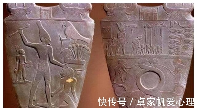 这座坟墓除了埃及那边比较典型的木乃伊之外,这位英国考古学家在这里发现了一件比较新奇的玩意儿——纳尔迈调色板。这是一件用石头雕刻成得像盾牌又像调色板的奇怪文物,最为奇怪的倒不是它的造型吗,而是它上面的雕刻图像——中外的专家一致认为这个图像上画的是蚩尤之战的故事。